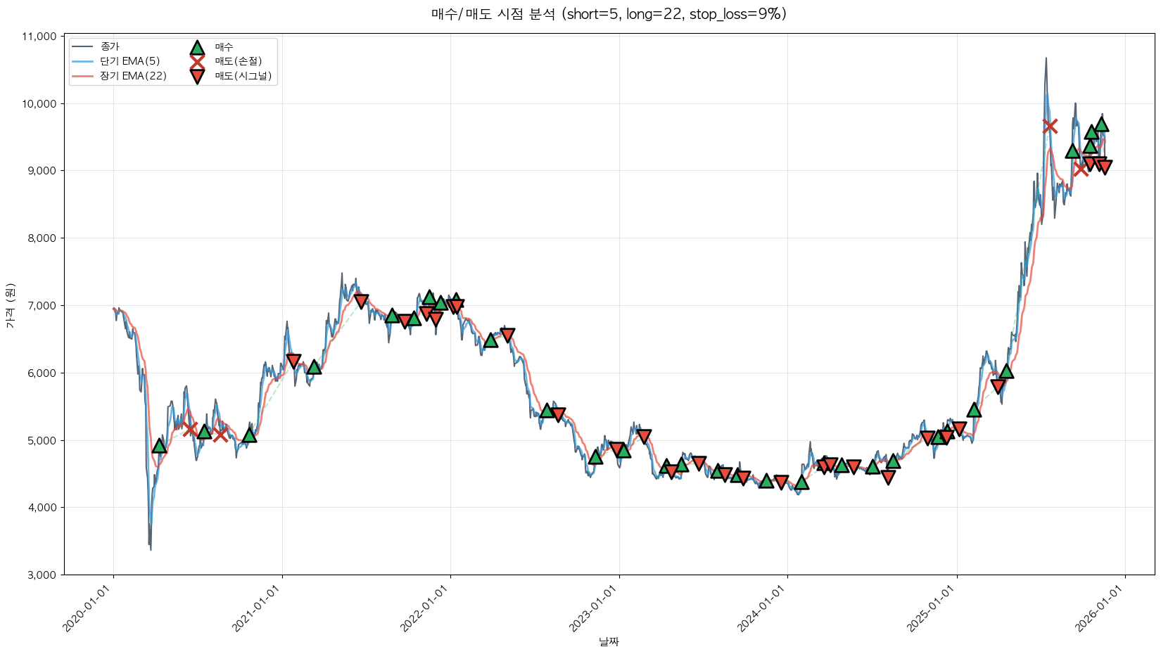 백테스팅 중... (short=5, long=22, stop_loss=9%)