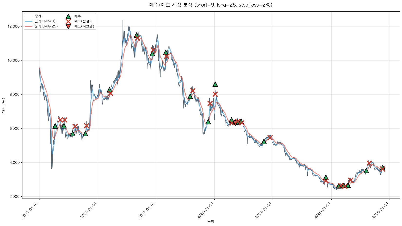 백테스팅 중... (short=9, long=25, stop_loss=2%)