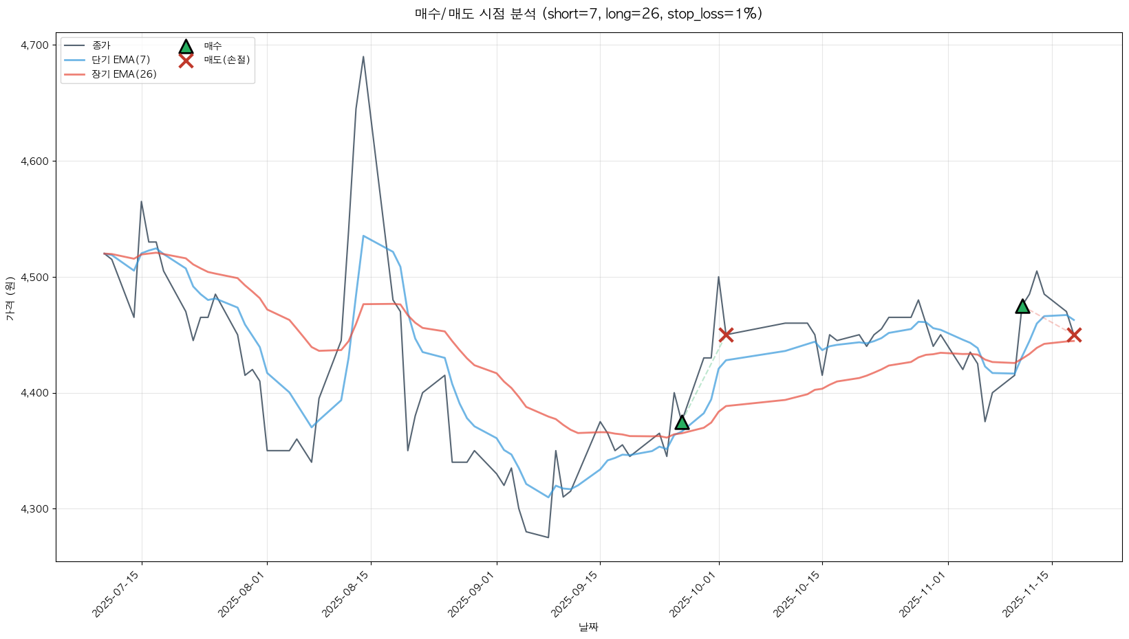 백테스팅 중... (short=7, long=26, stop_loss=1%)