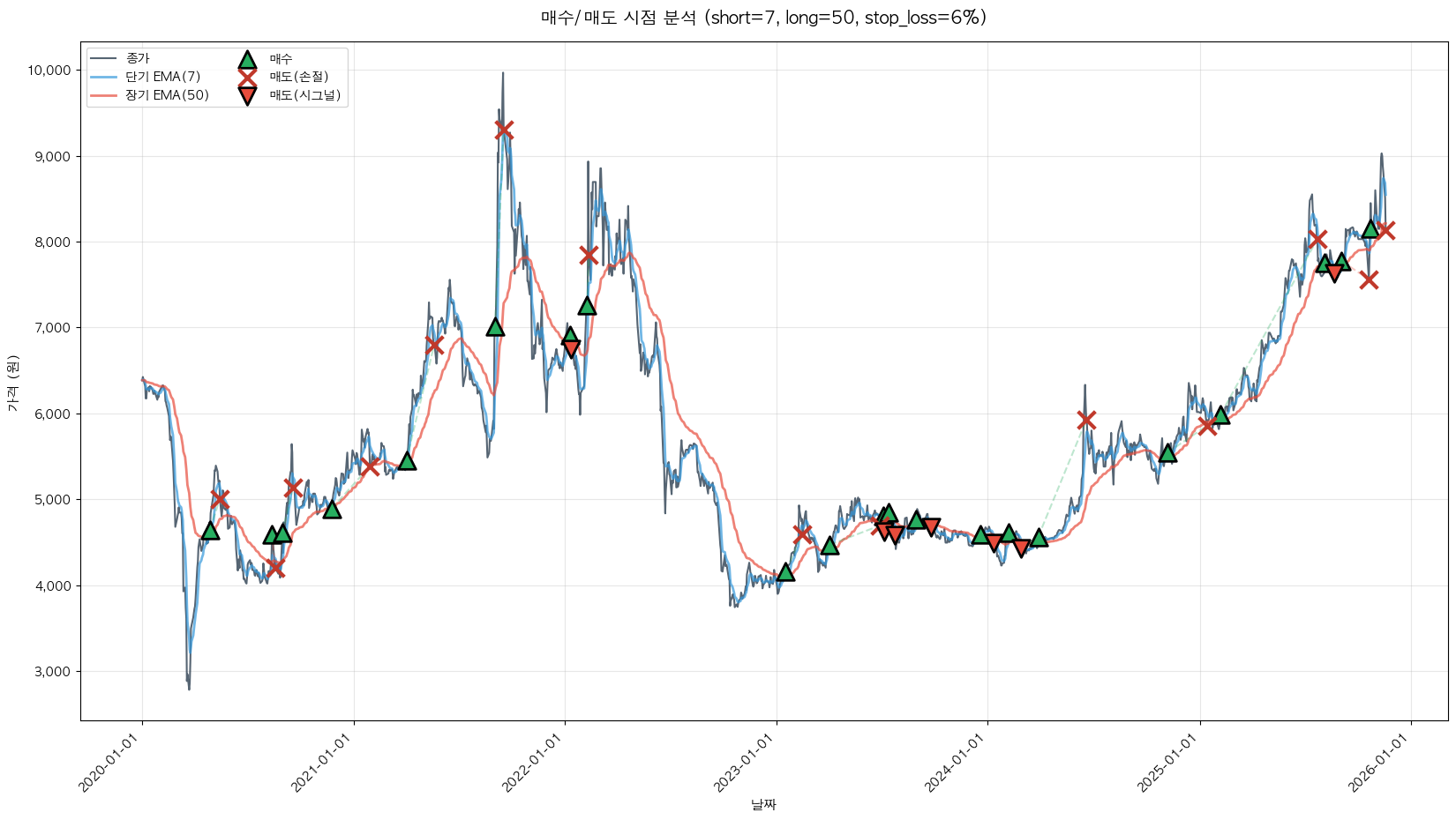 백테스팅 중... (short=7, long=50, stop_loss=6%)
