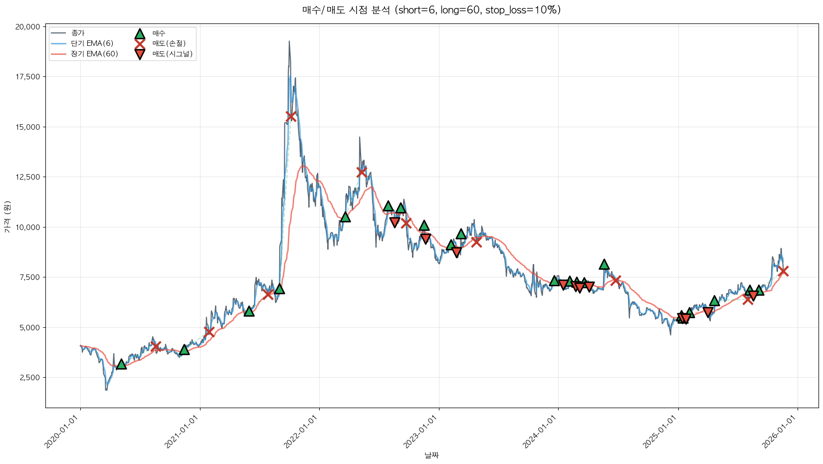 백테스팅 중... (short=6, long=60, stop_loss=10%)