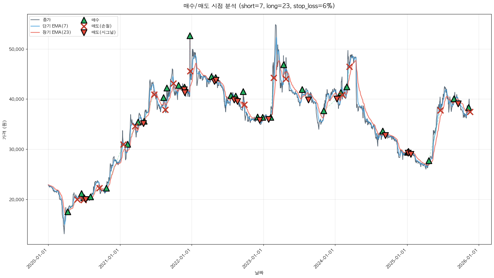 백테스팅 중... (short=7, long=23, stop_loss=6%)