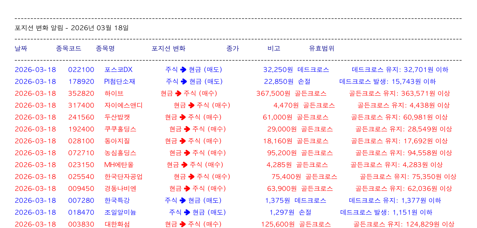 포지션 변화 알림 - 2026년 03월 19일