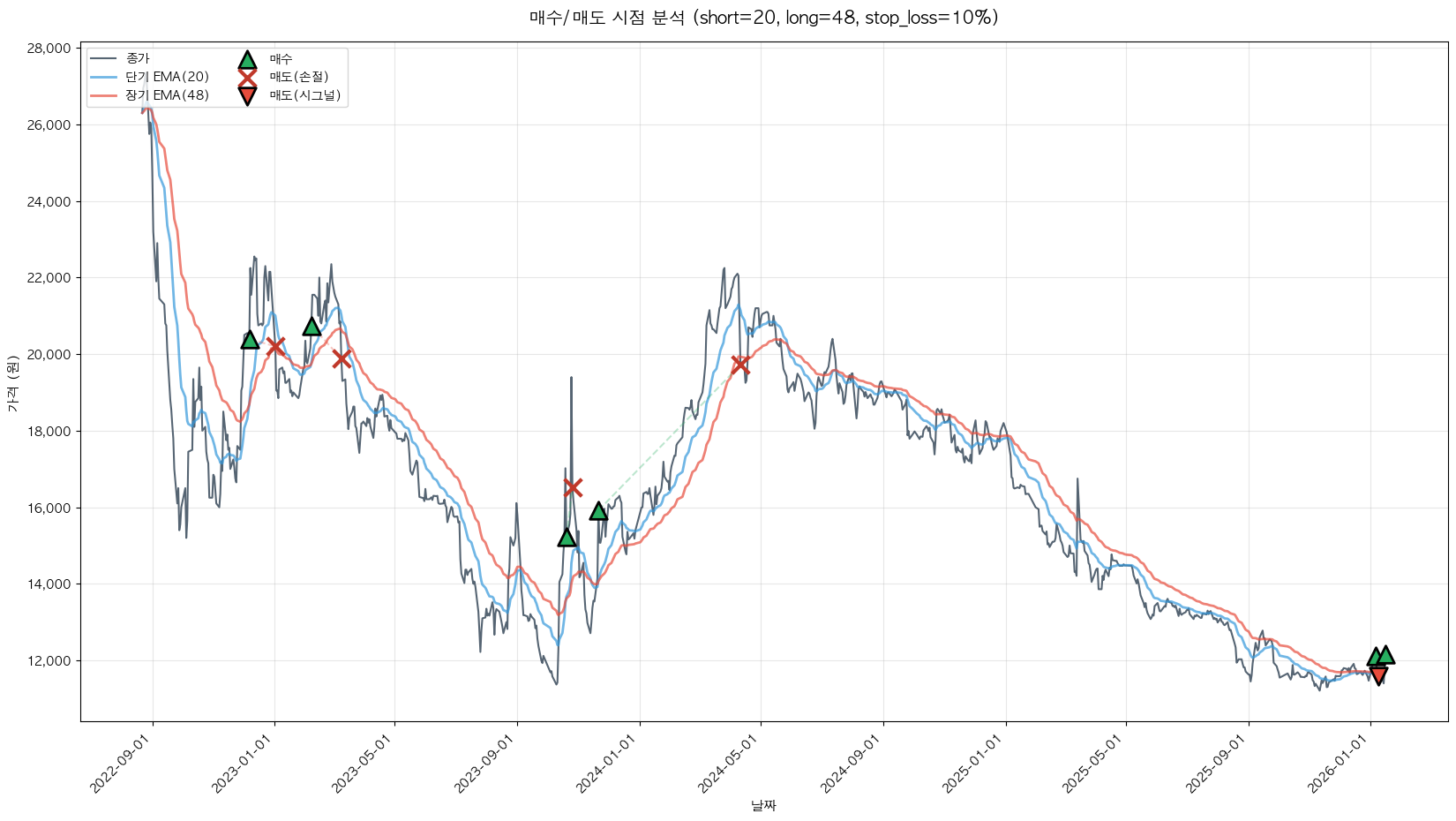 백테스팅 중... (short=20, long=48, stop_loss=10%)