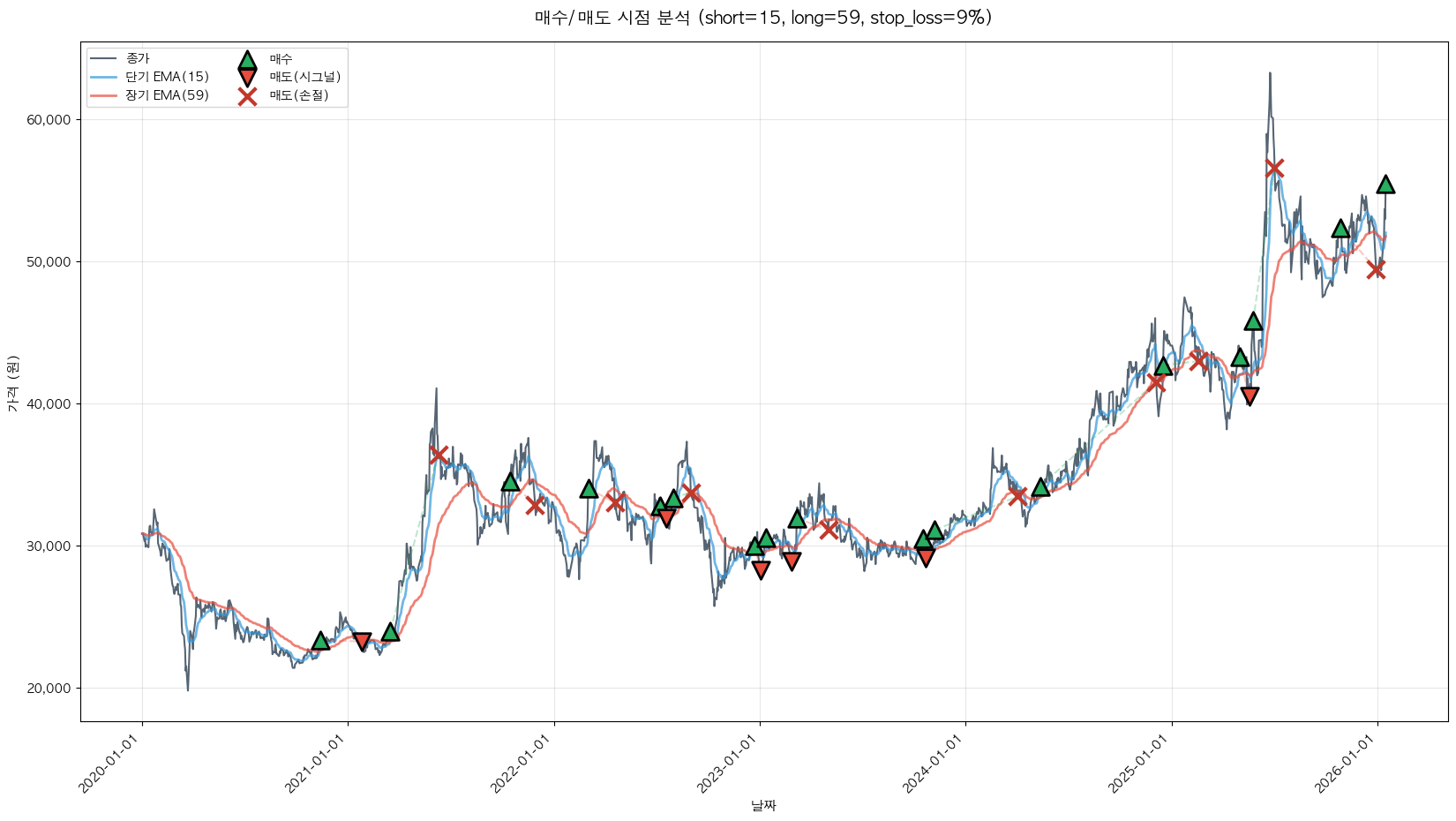 최적 파라미터: 단기=15, 장기=59, 손절=9%
