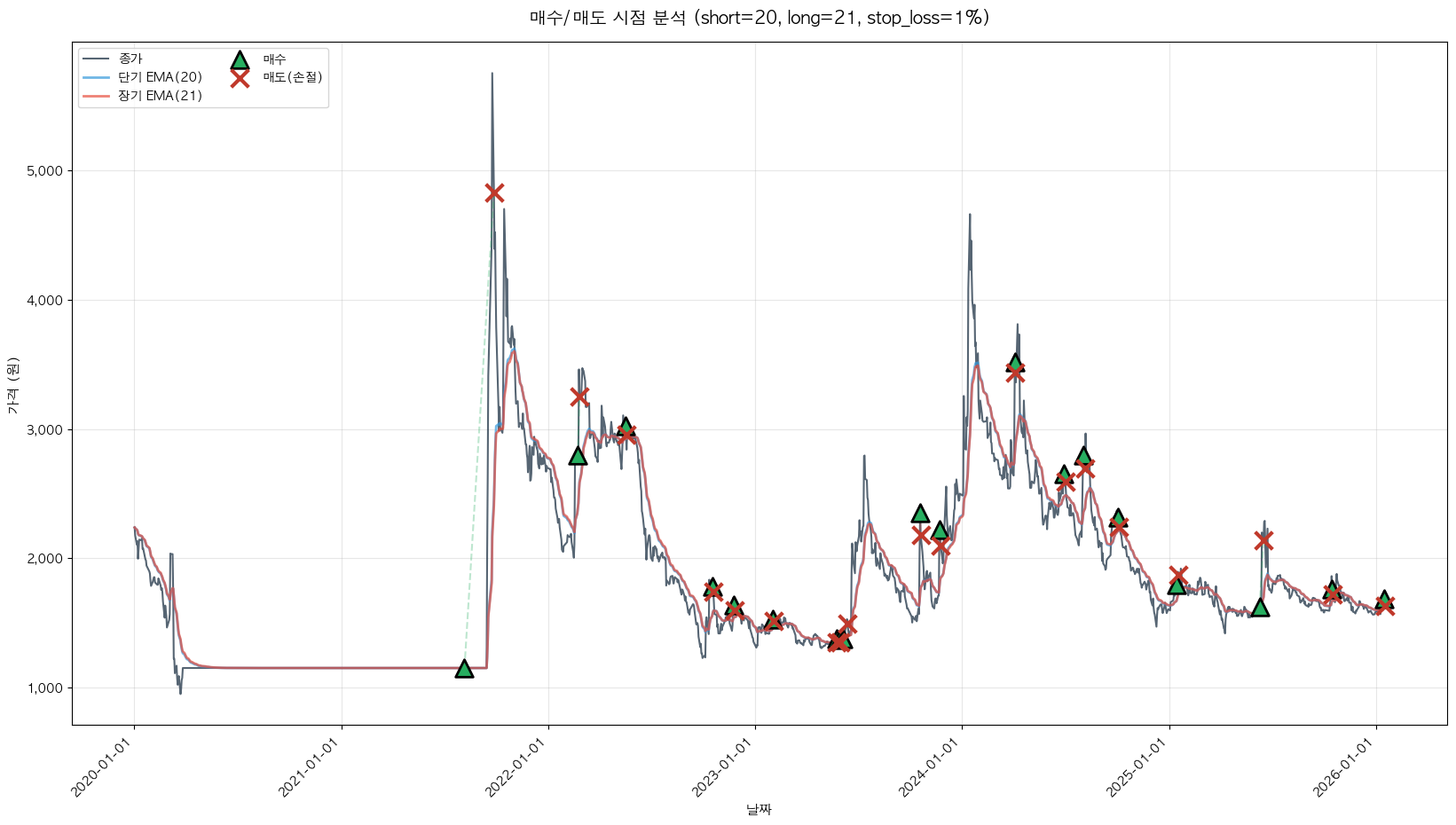 백테스팅 중... (short=20, long=21, stop_loss=1%)