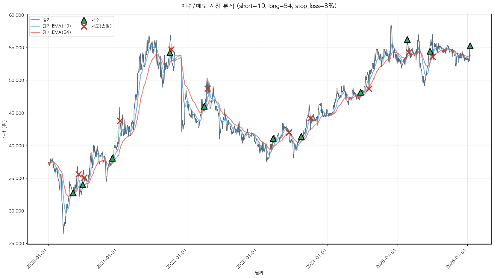 최적 파라미터: 단기=19, 장기=54, 손절=3%