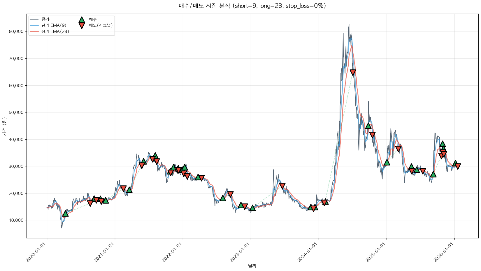 백테스팅 중... (short=9, long=23, stop_loss=0%)