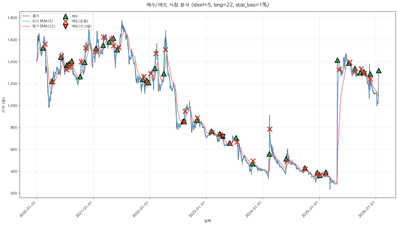 백테스팅 중... (short=5, long=22, stop_loss=1%)