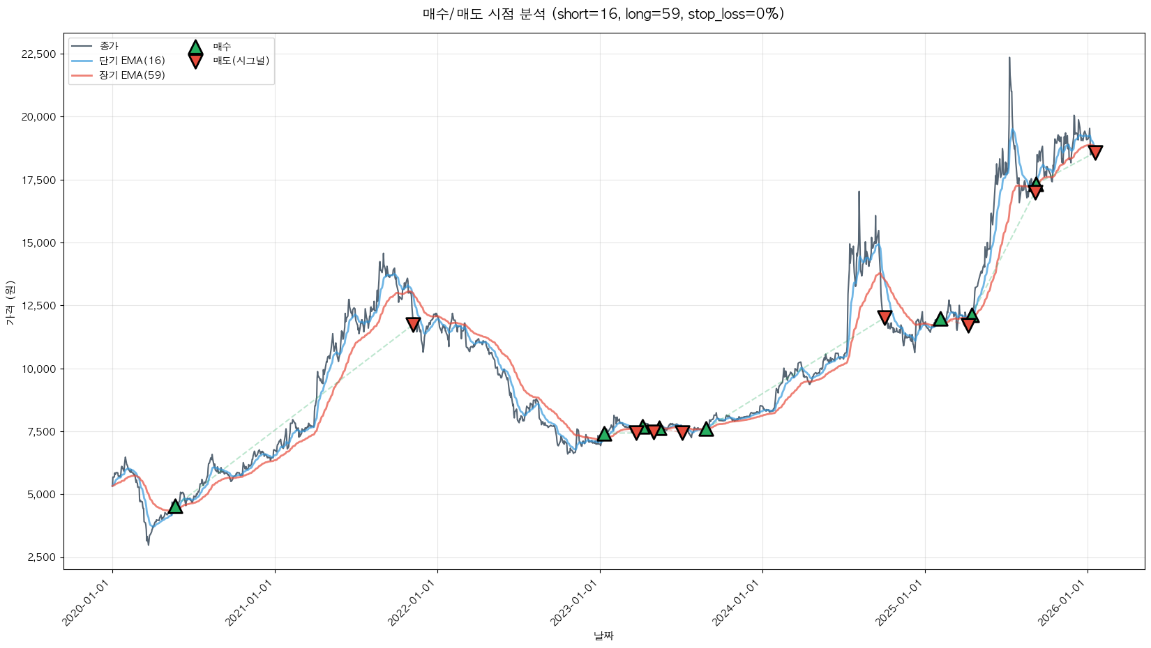 최적 파라미터: 단기=16, 장기=59, 손절=0%