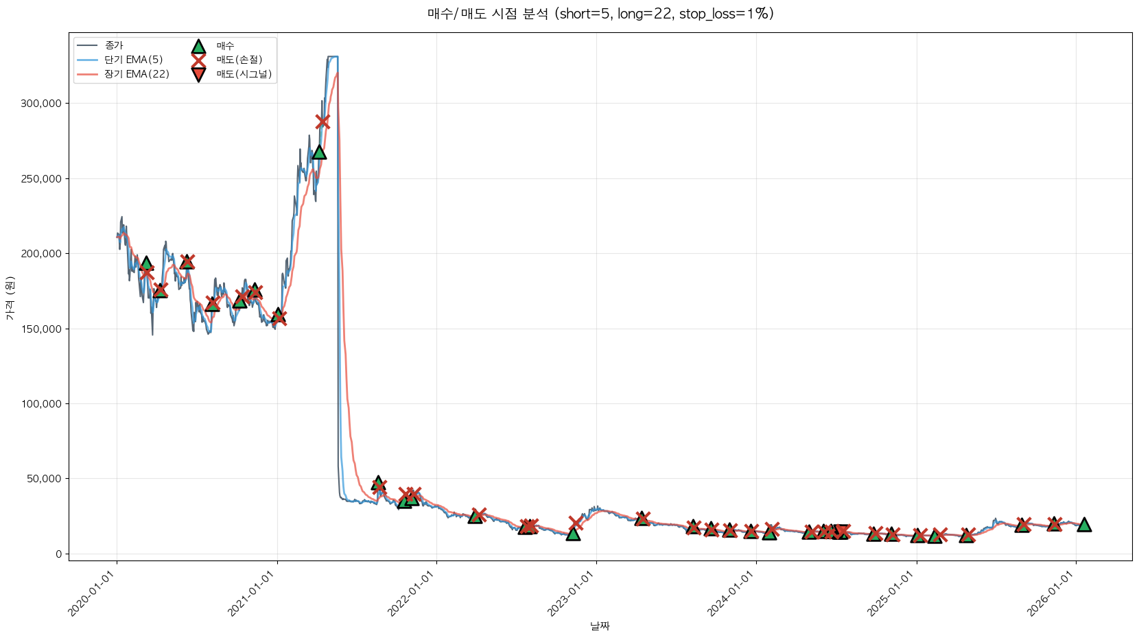 백테스팅 중... (short=5, long=22, stop_loss=1%)