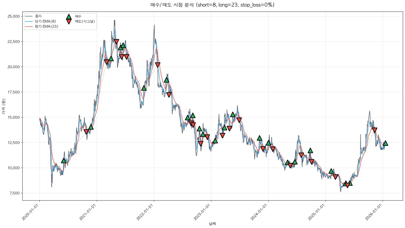 백테스팅 중... (short=8, long=23, stop_loss=0%)