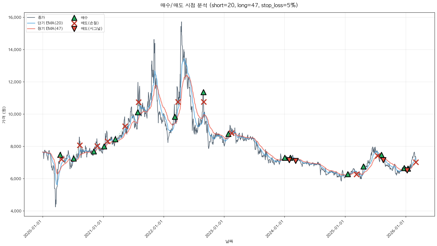백테스팅 중... (short=20, long=47, stop_loss=5%)