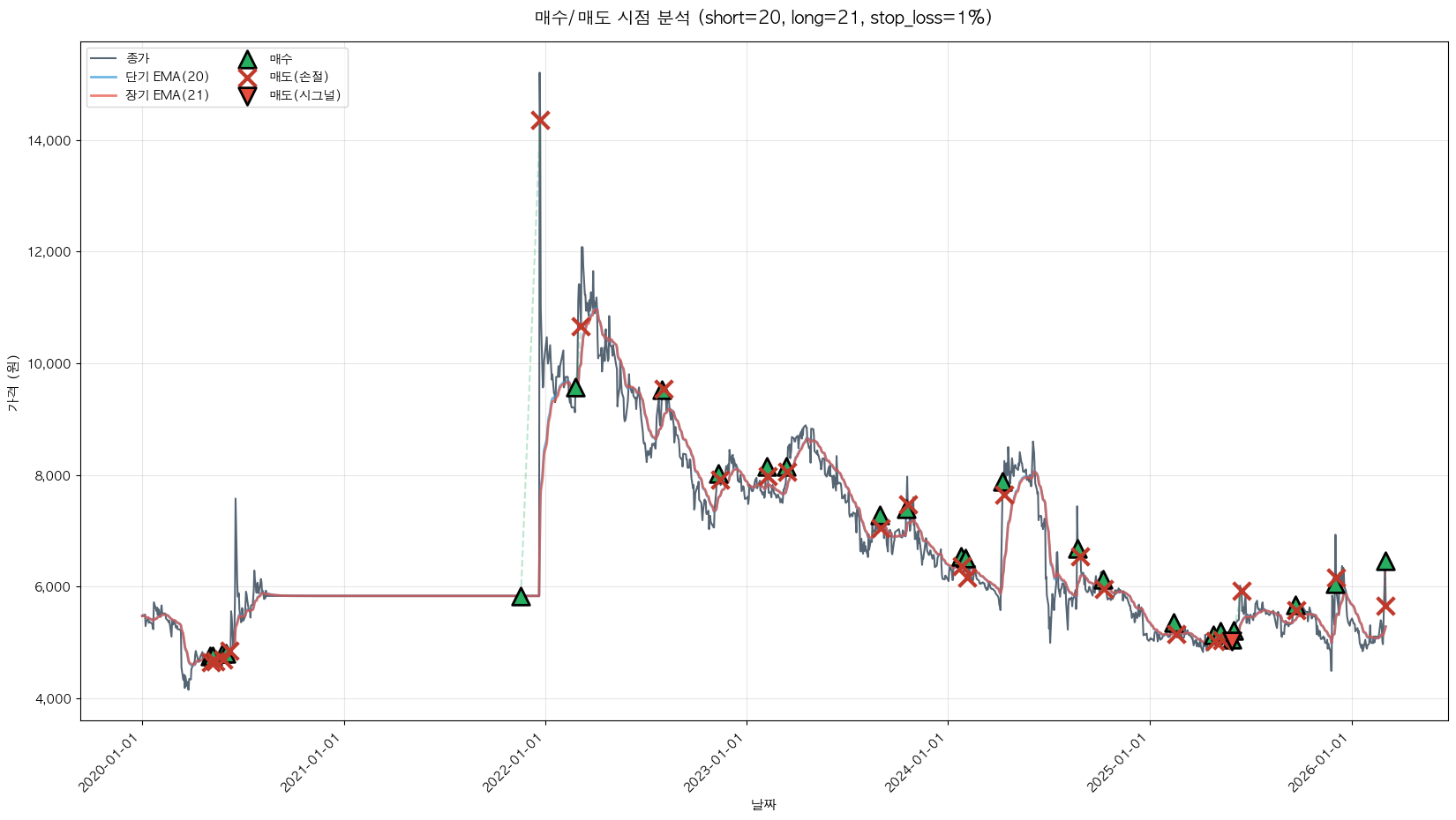 백테스팅 중... (short=20, long=21, stop_loss=1%)