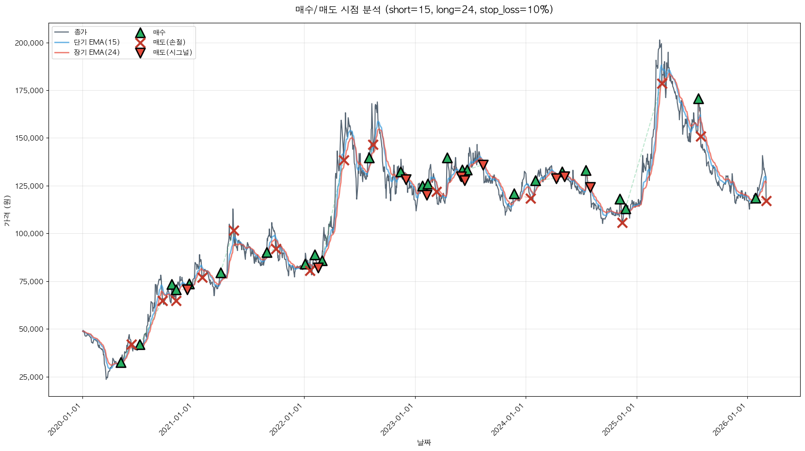 백테스팅 중... (short=15, long=24, stop_loss=10%)