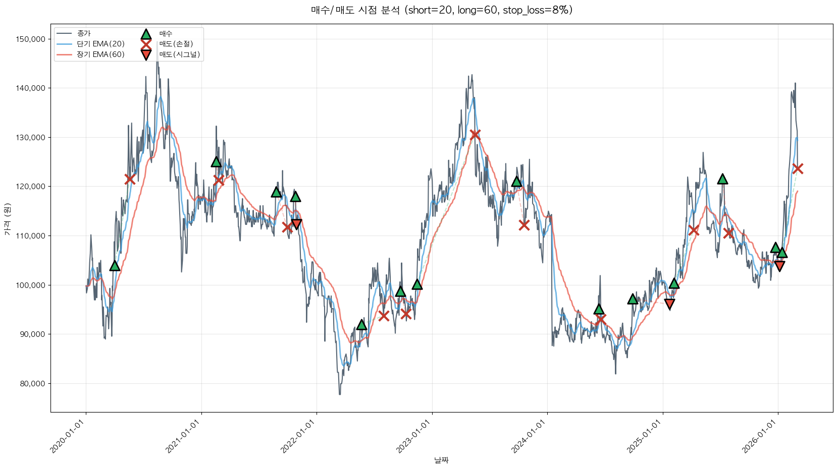 백테스팅 중... (short=20, long=60, stop_loss=8%)