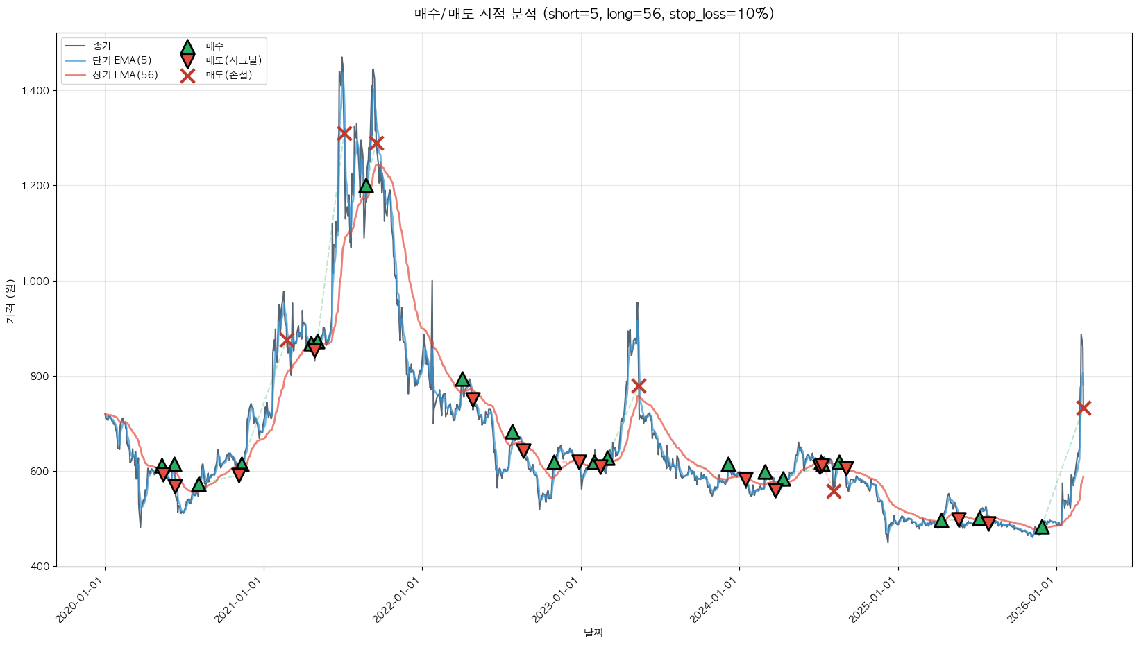 백테스팅 중... (short=5, long=56, stop_loss=10%)