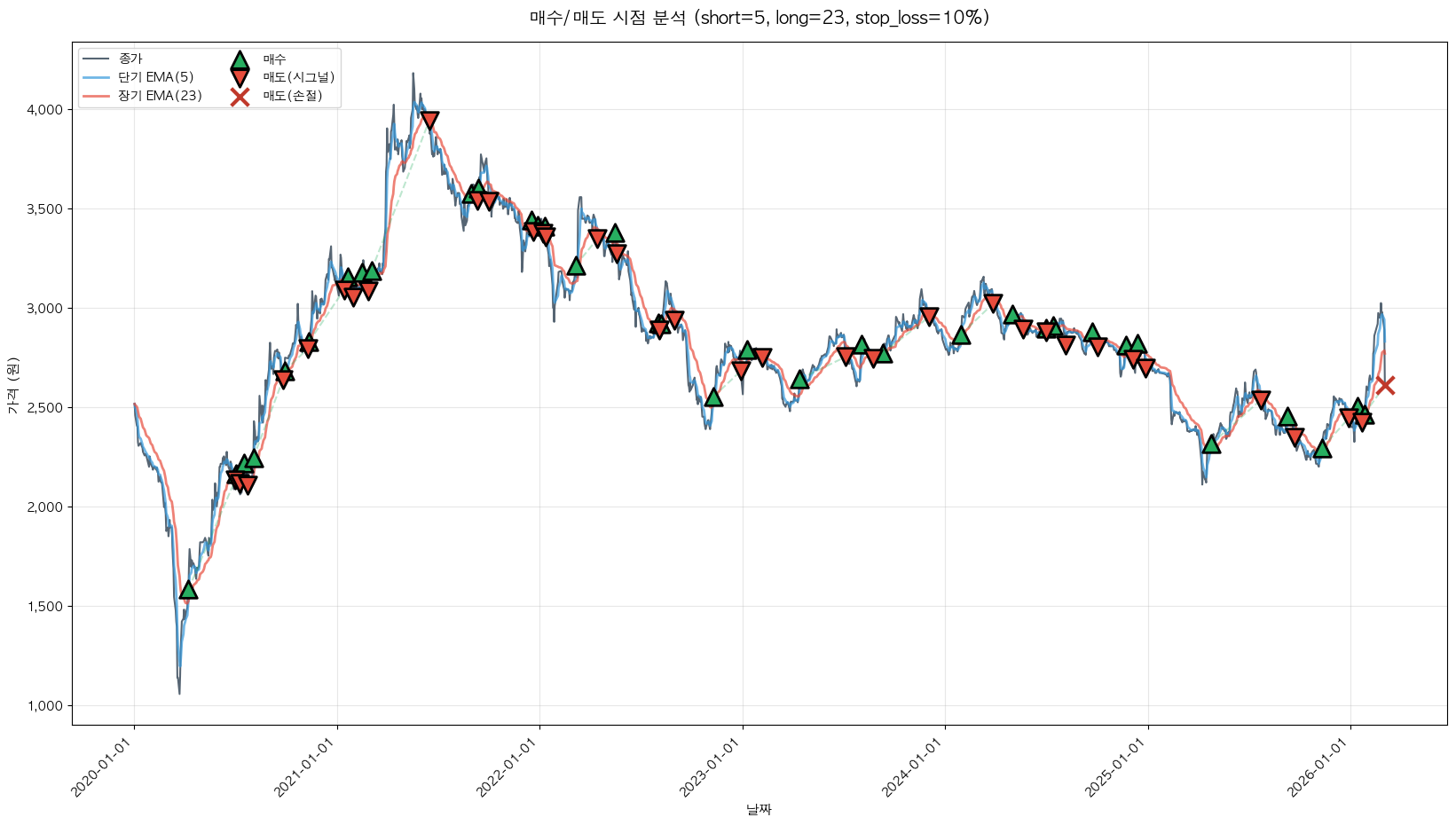 백테스팅 중... (short=5, long=23, stop_loss=10%)