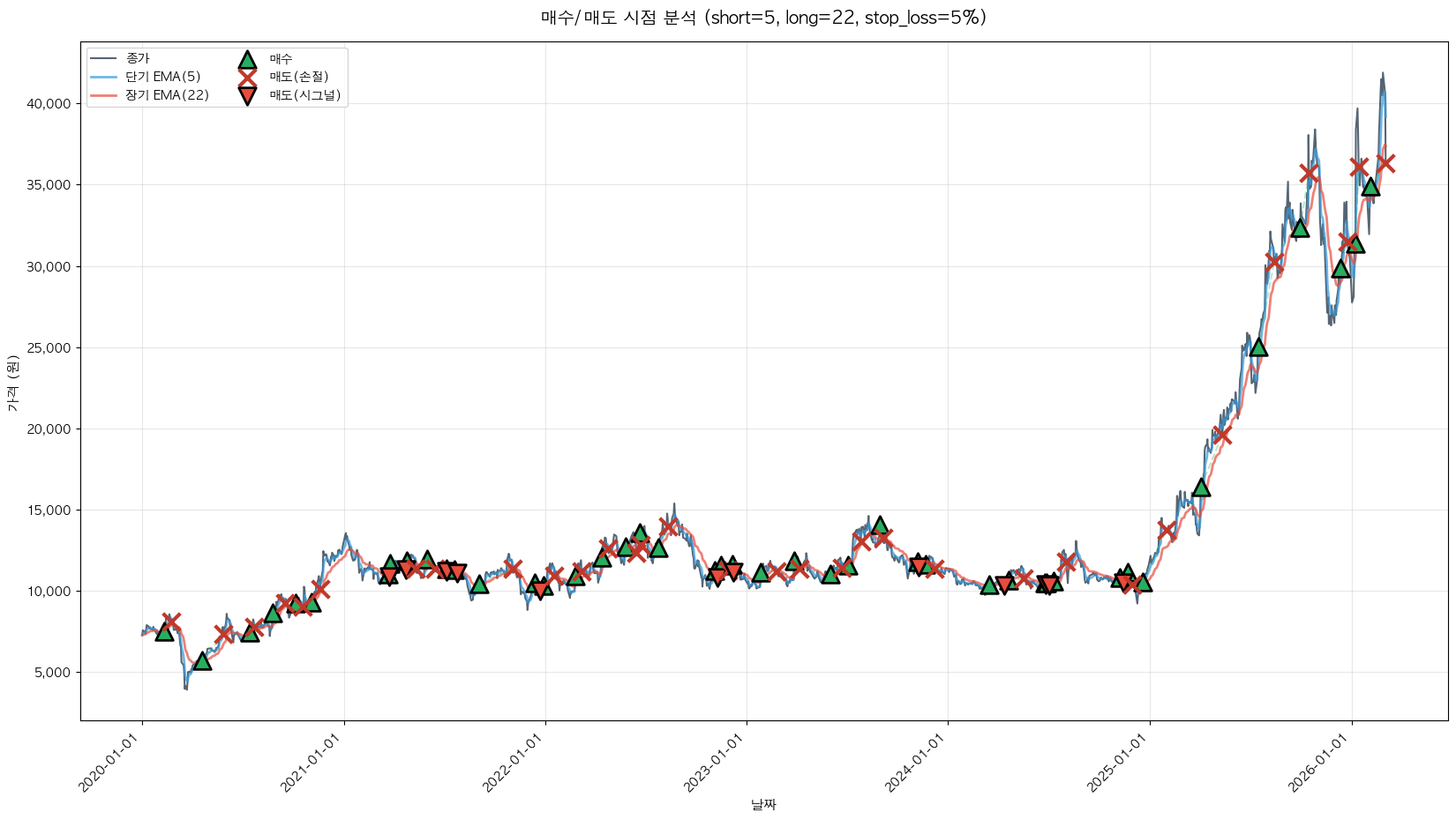 백테스팅 중... (short=5, long=22, stop_loss=5%)