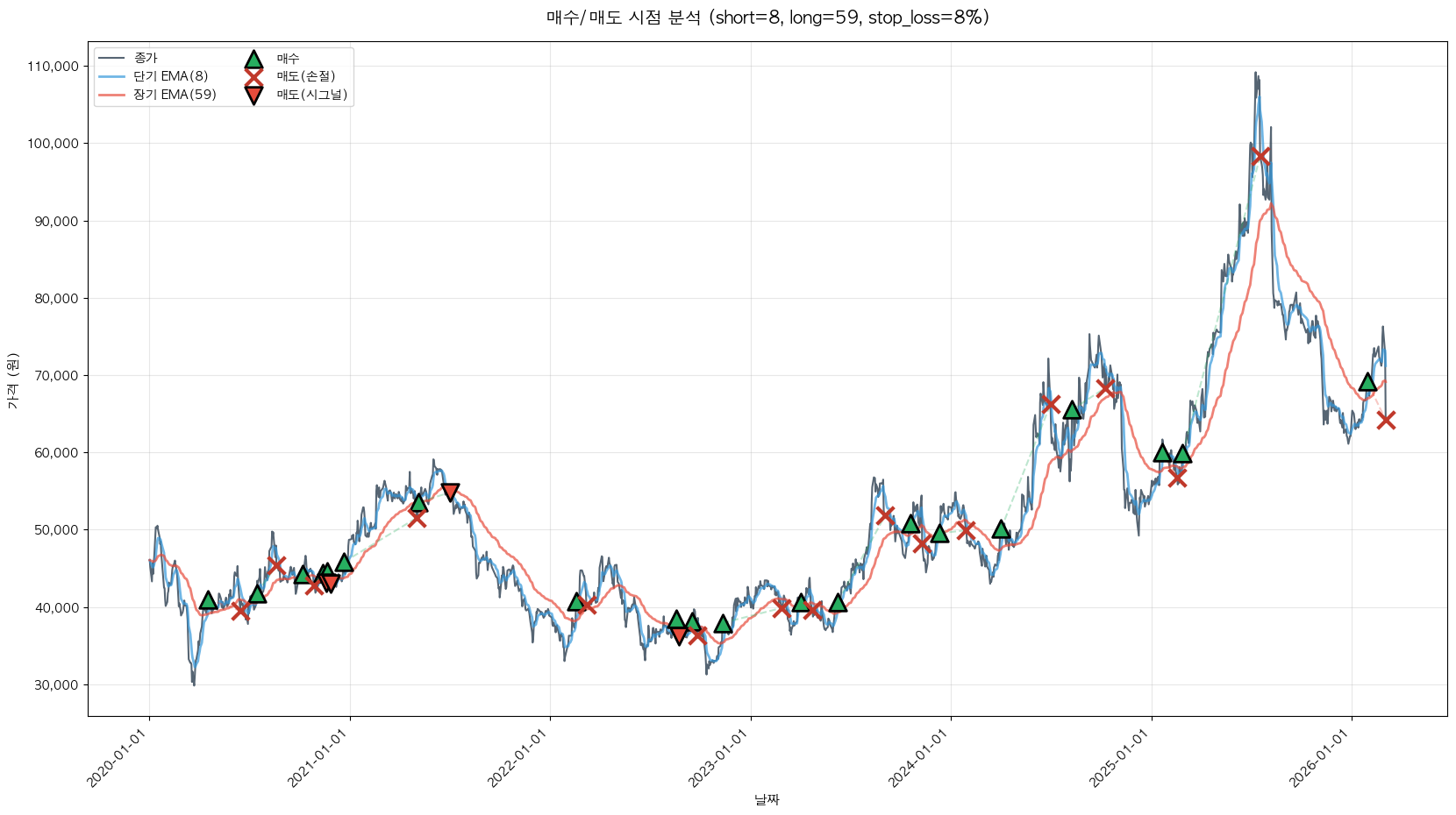 백테스팅 중... (short=8, long=59, stop_loss=8%)