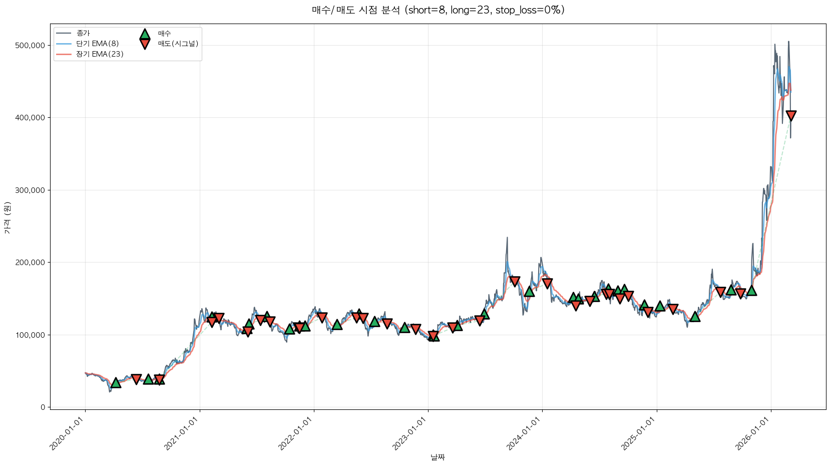 백테스팅 중... (short=8, long=23, stop_loss=0%)