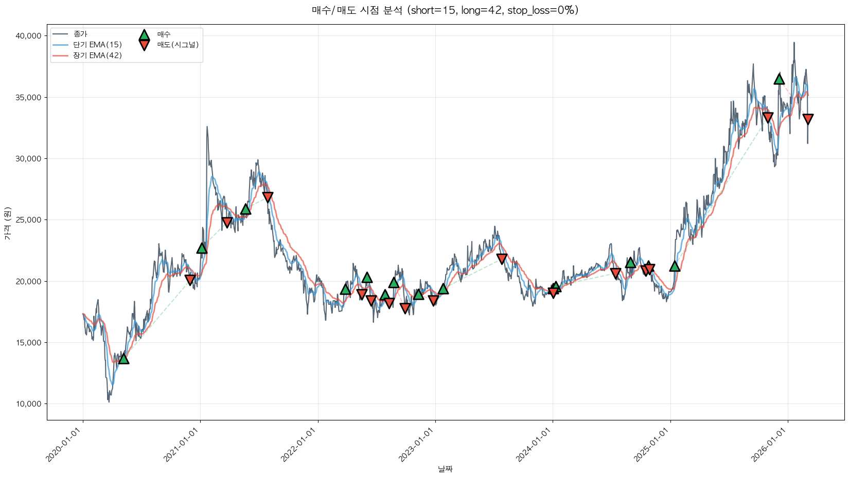 최적 파라미터: 단기=15, 장기=42, 손절=0%