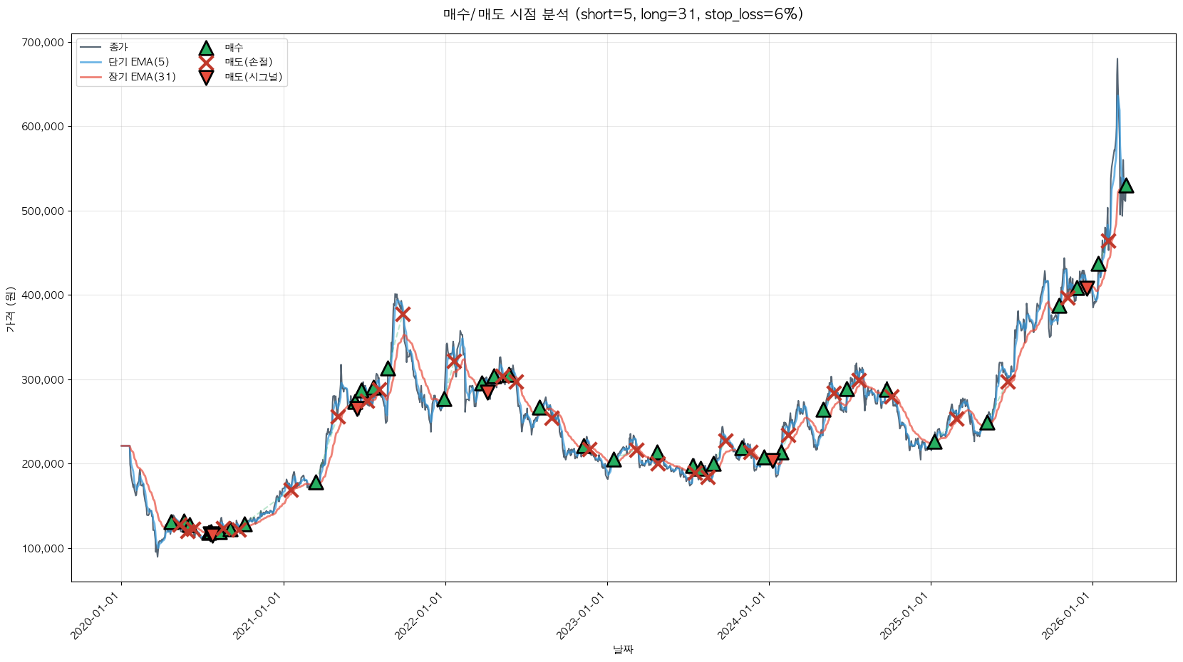 최적 파라미터: 단기=5, 장기=31, 손절=6%