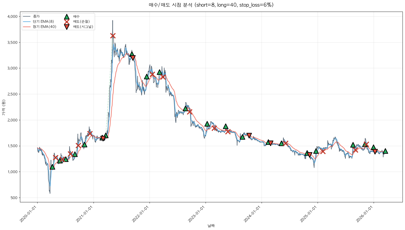 백테스팅 중... (short=8, long=40, stop_loss=6%)