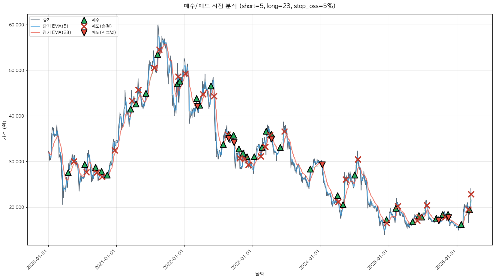 백테스팅 중... (short=5, long=23, stop_loss=5%)