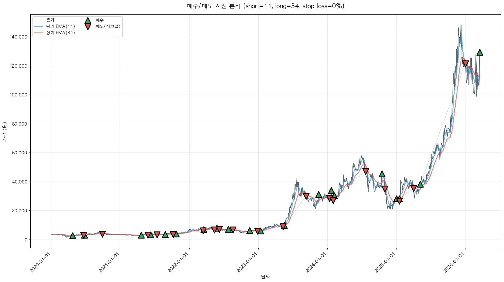 백테스팅 중... (short=11, long=34, stop_loss=0%)