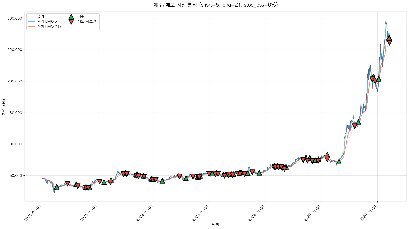최적 파라미터: 단기=5, 장기=21, 손절=0%