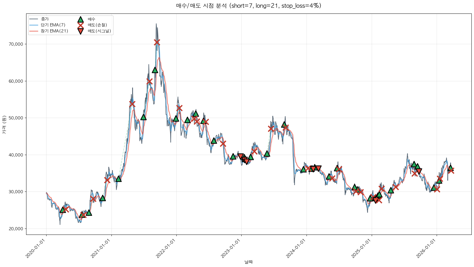 백테스팅 중... (short=7, long=21, stop_loss=4%)