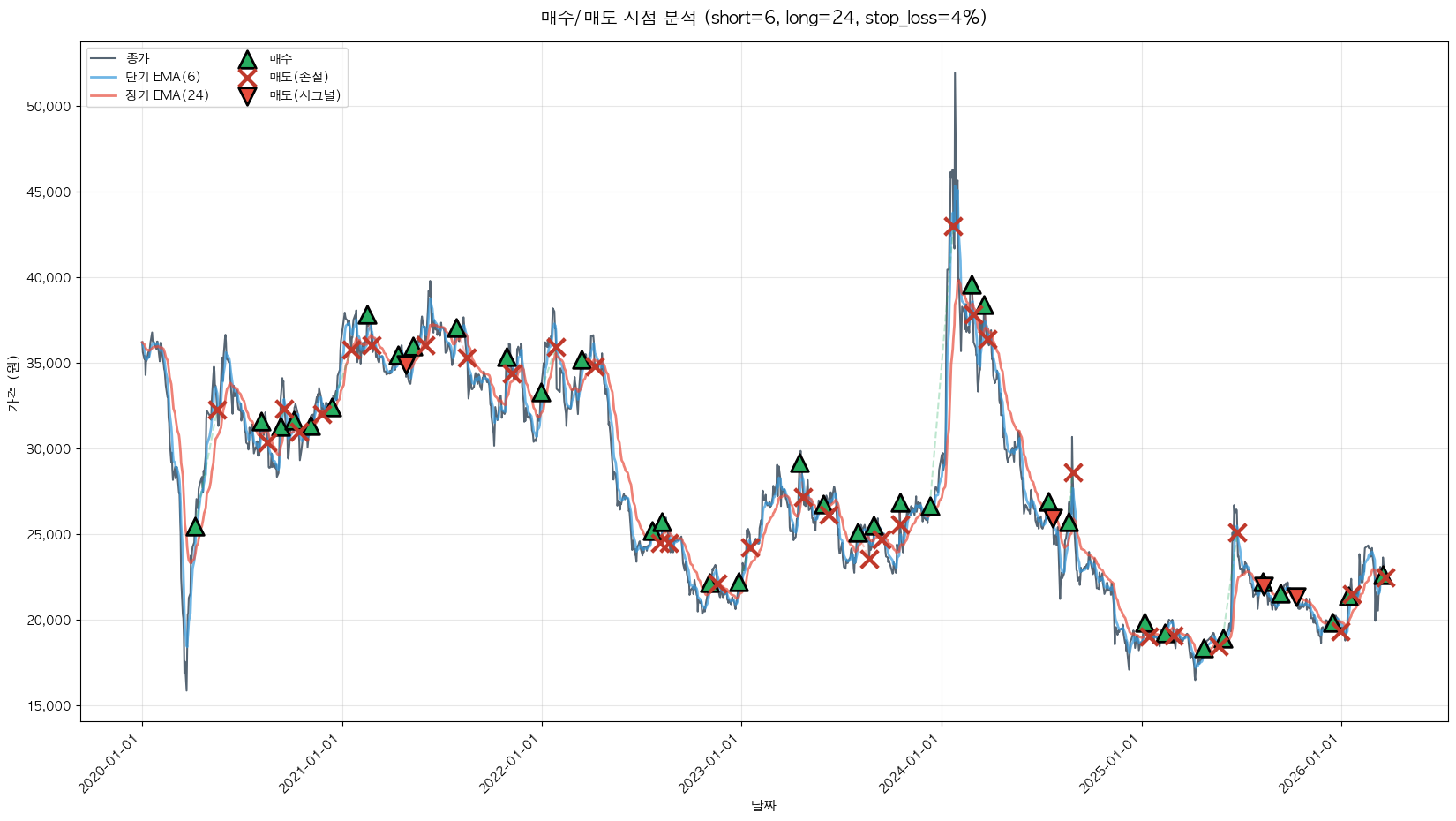백테스팅 중... (short=6, long=24, stop_loss=4%)