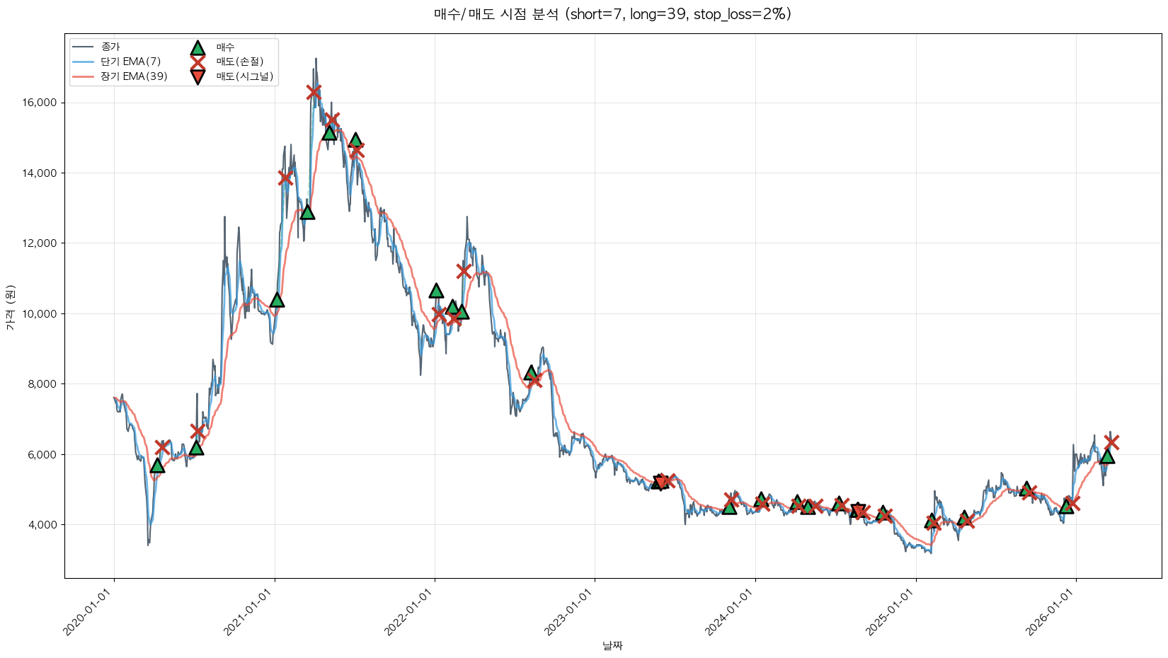 백테스팅 중... (short=7, long=39, stop_loss=2%)