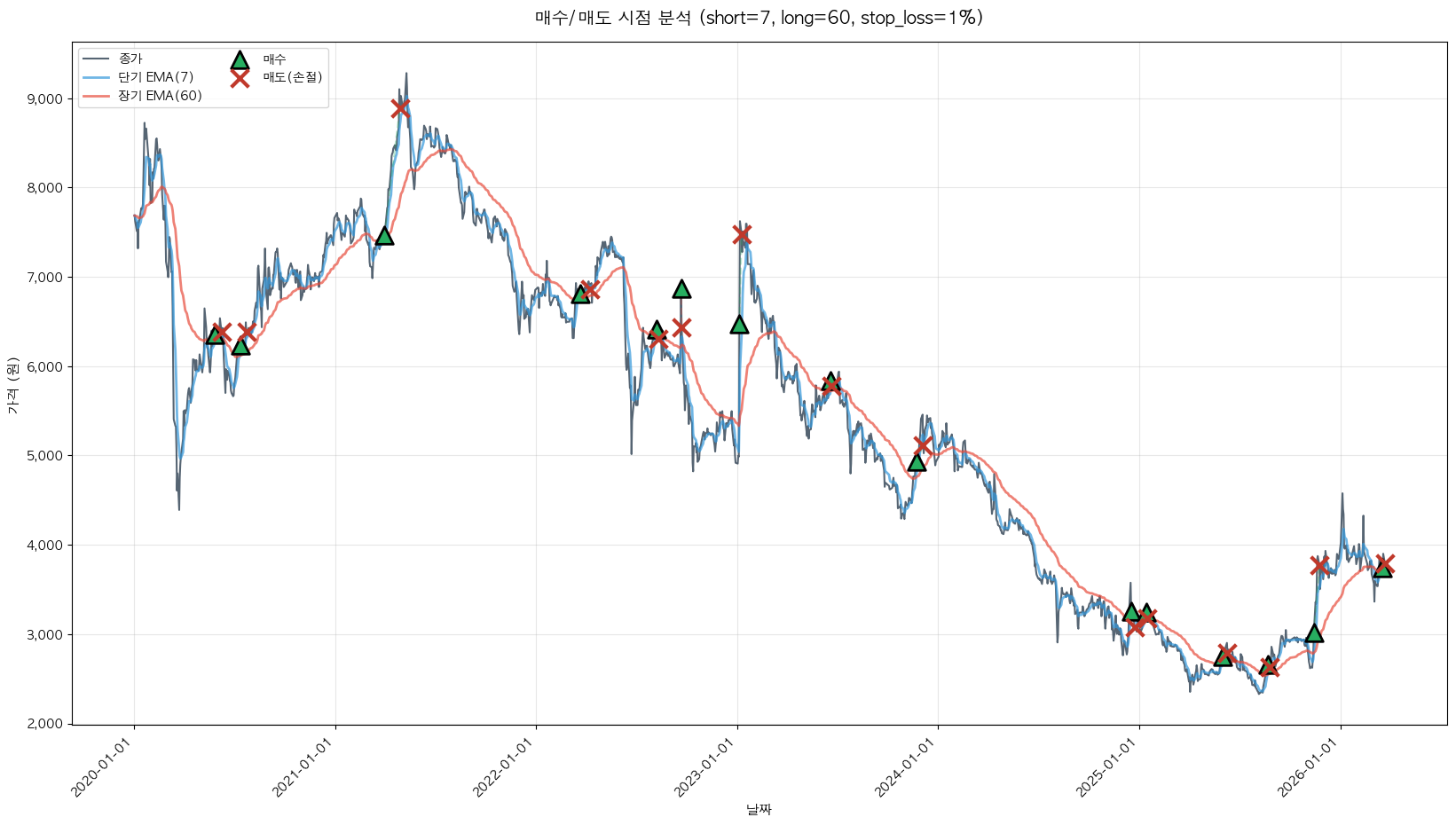 백테스팅 중... (short=7, long=60, stop_loss=1%)