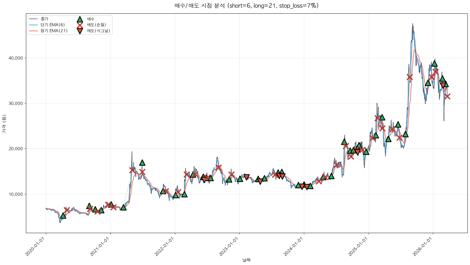 백테스팅 중... (short=6, long=21, stop_loss=7%)