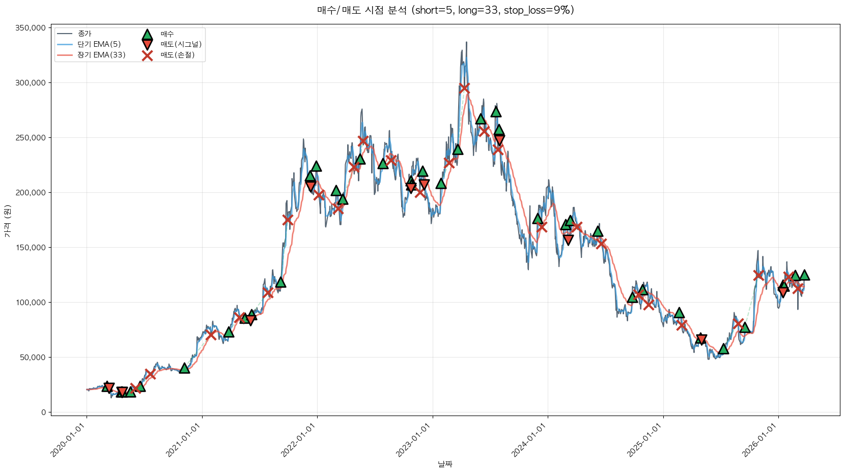 백테스팅 중... (short=5, long=33, stop_loss=9%)