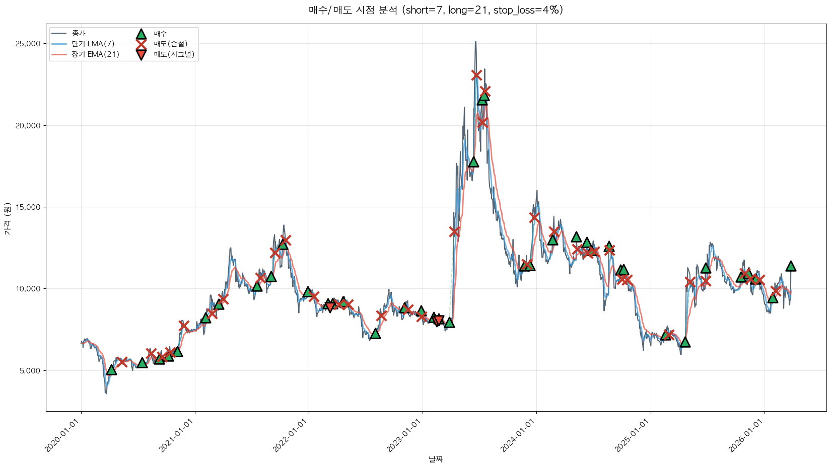 백테스팅 중... (short=7, long=21, stop_loss=4%)