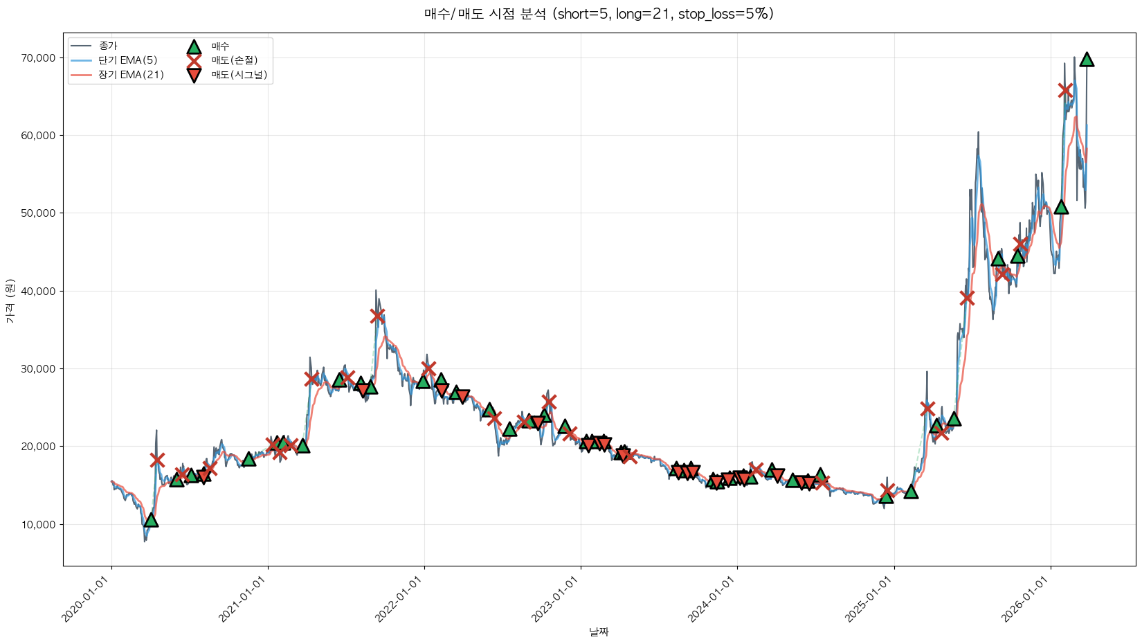백테스팅 중... (short=5, long=21, stop_loss=5%)