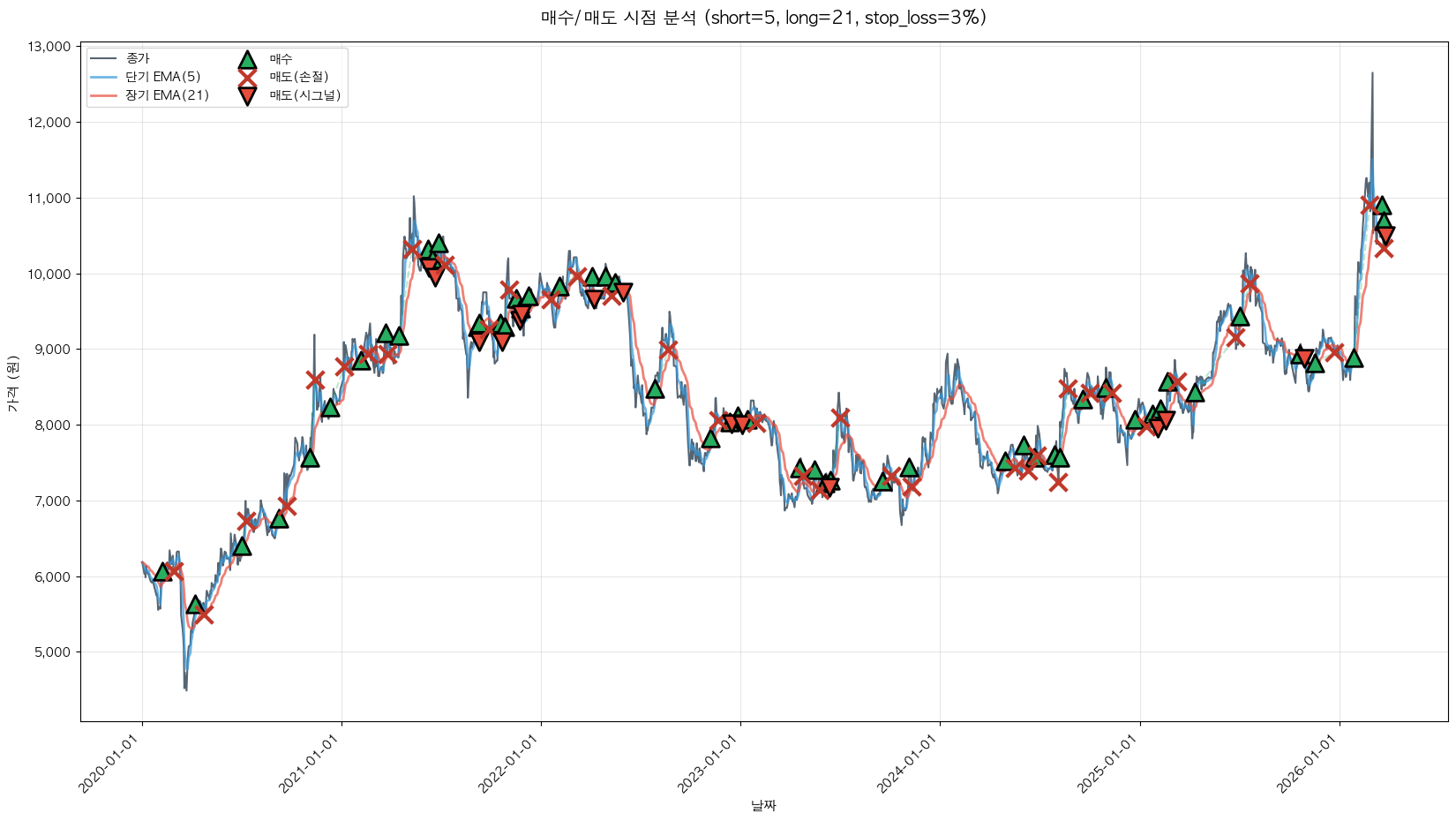 백테스팅 중... (short=5, long=21, stop_loss=3%)