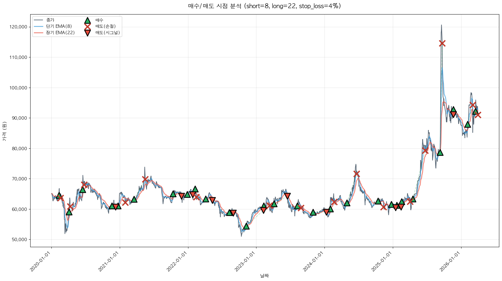 백테스팅 중... (short=8, long=22, stop_loss=4%)