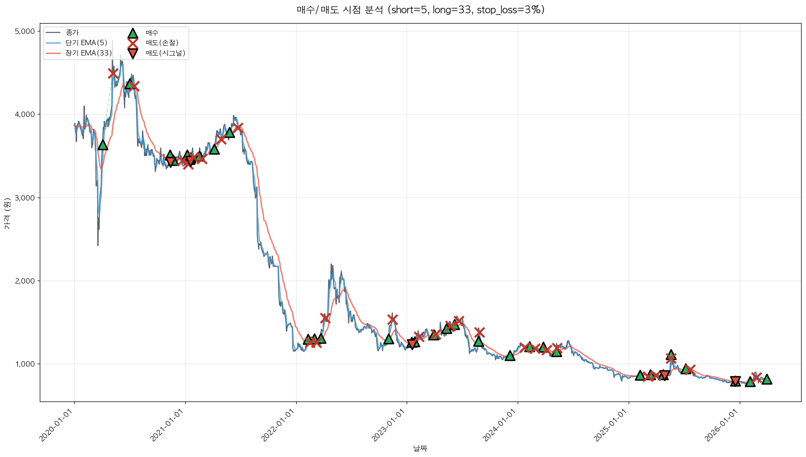 백테스팅 중... (short=5, long=33, stop_loss=3%)