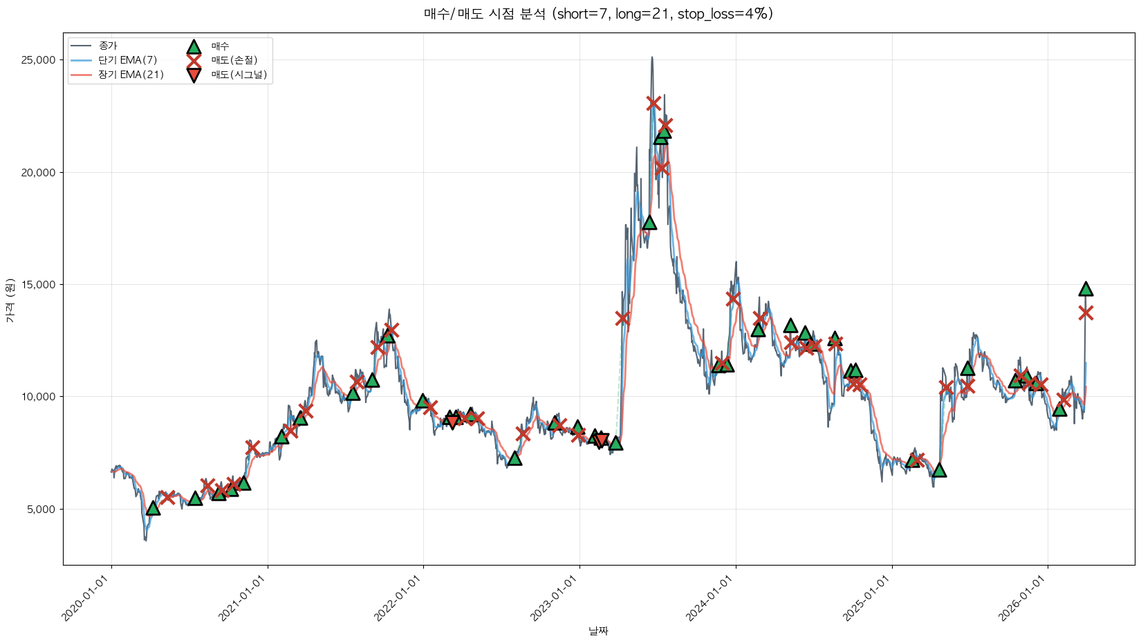 백테스팅 중... (short=7, long=21, stop_loss=4%)