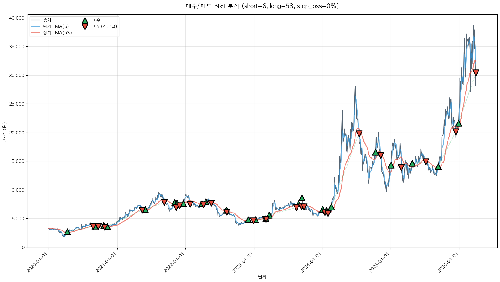 최적 파라미터: 단기=6, 장기=53, 손절=0%