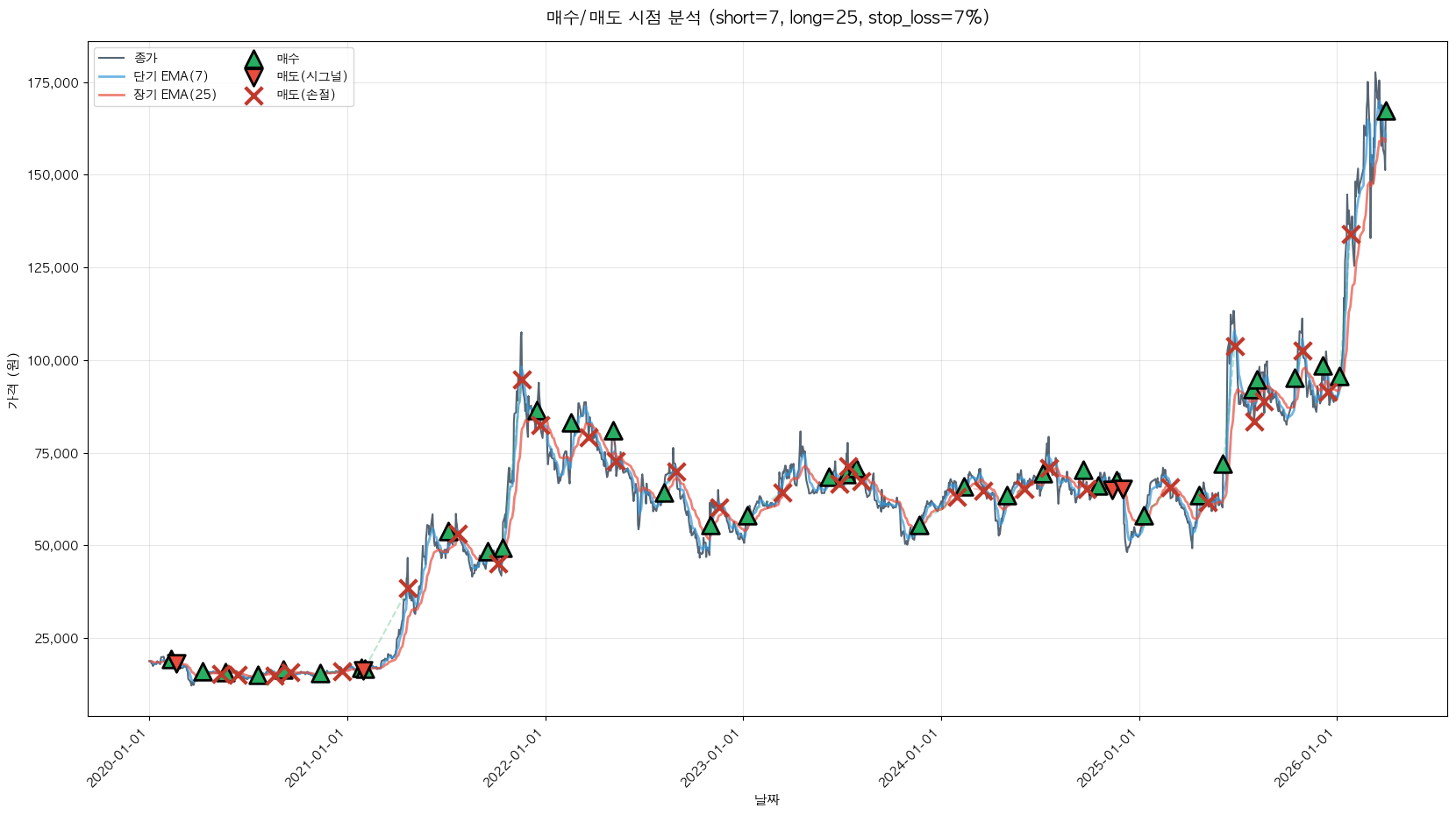 백테스팅 중... (short=7, long=25, stop_loss=7%)