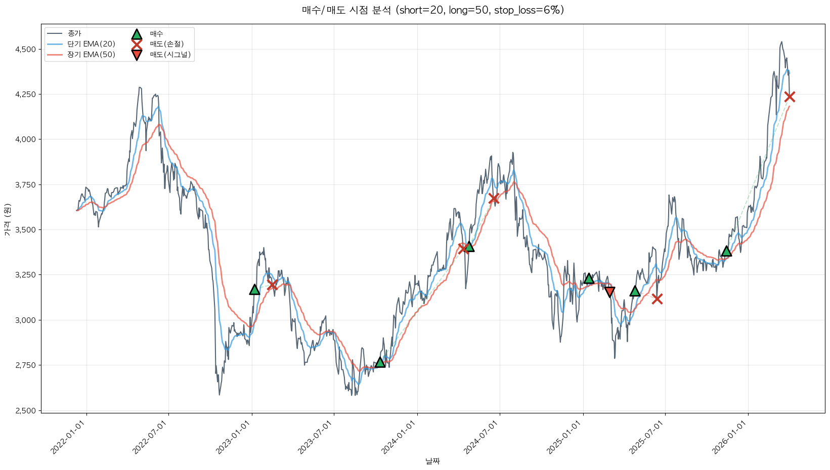 백테스팅 중... (short=20, long=50, stop_loss=6%)
