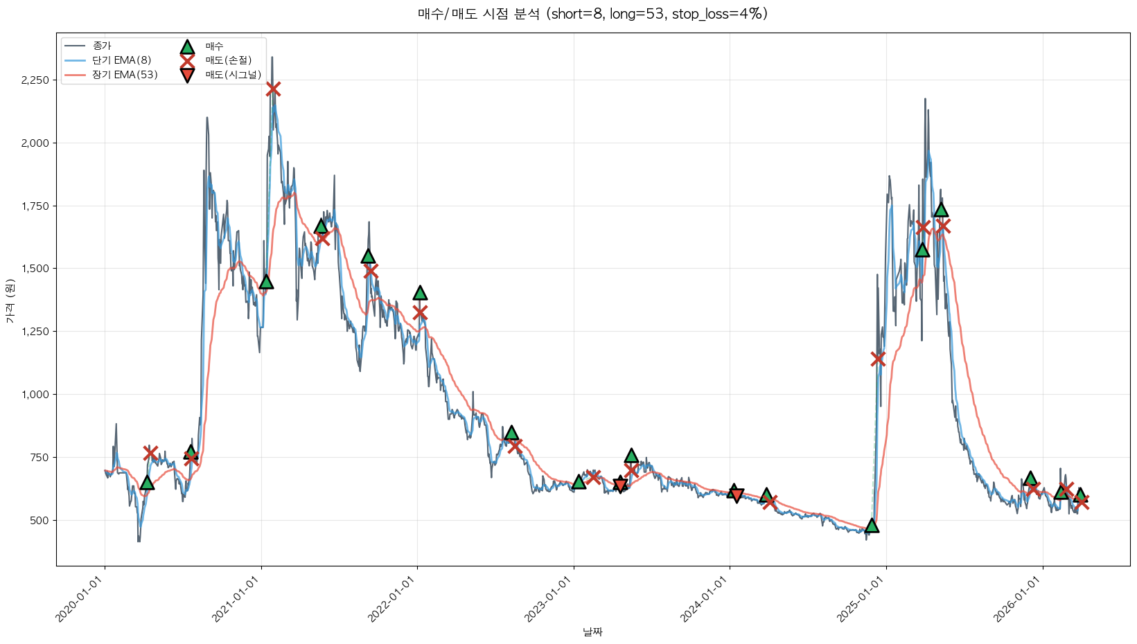 백테스팅 중... (short=8, long=53, stop_loss=4%)