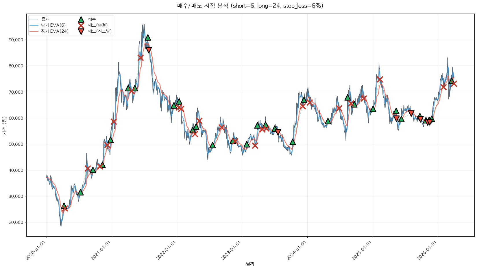 백테스팅 중... (short=6, long=24, stop_loss=6%)