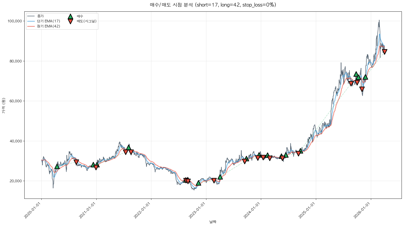 최적 파라미터: 단기=17, 장기=42, 손절=0%