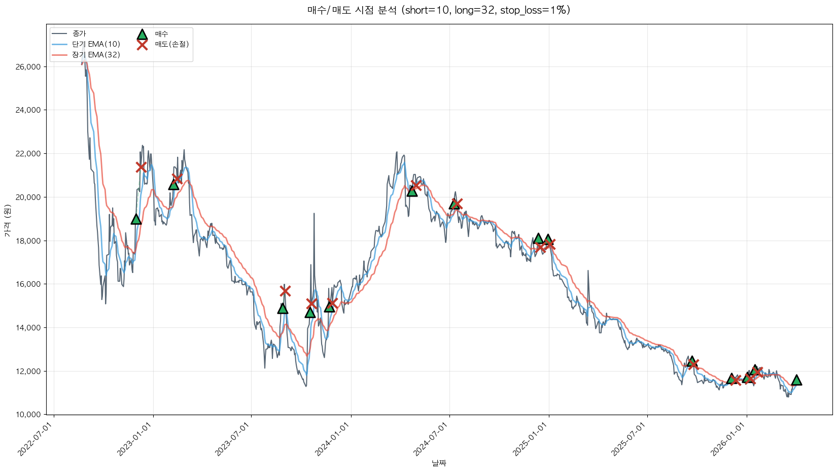 백테스팅 중... (short=10, long=32, stop_loss=1%)
